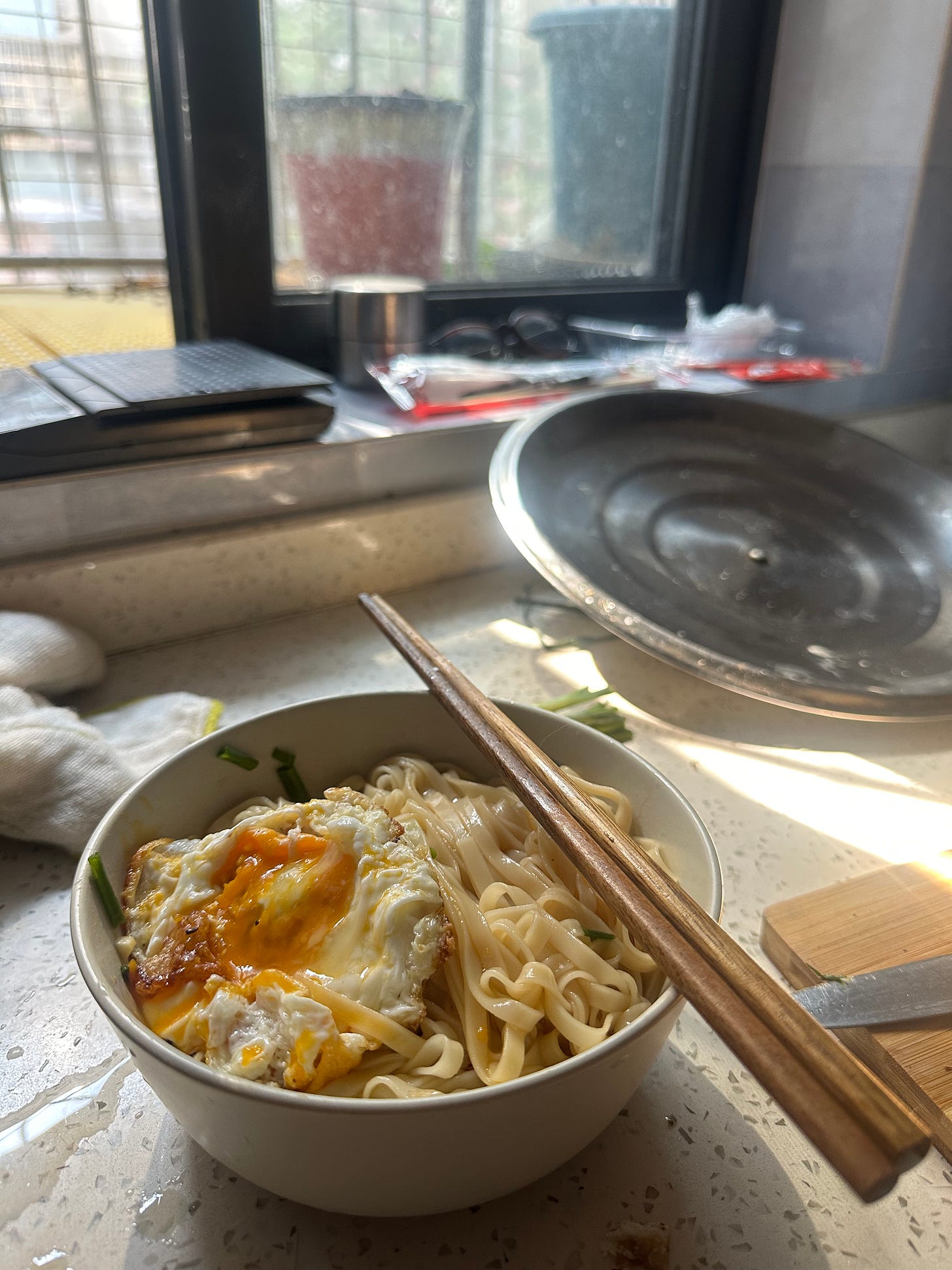 还有,跟各位分享我今天中午在家里做的挂面,你们打几分?